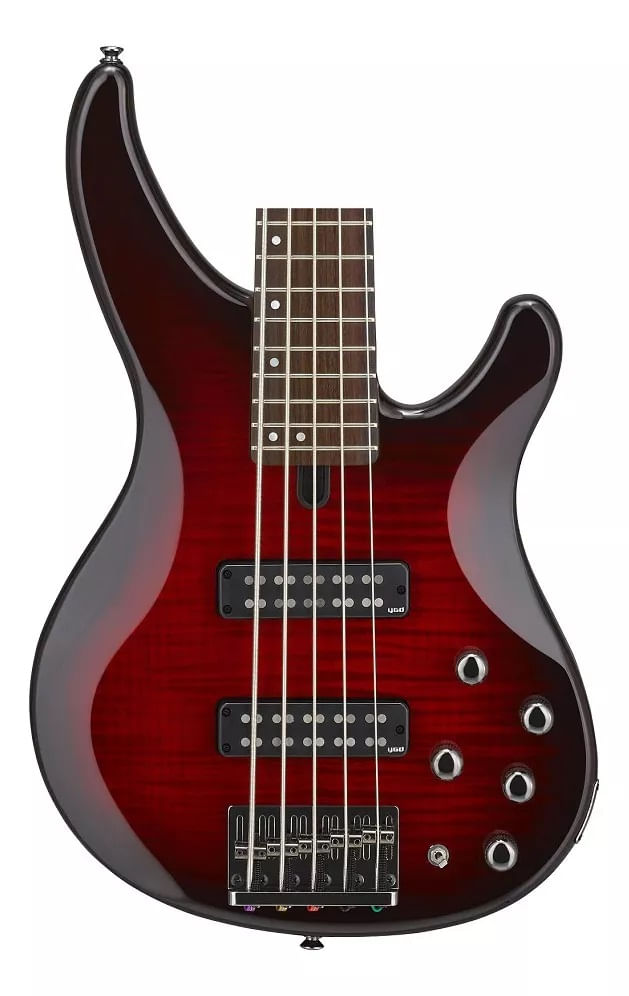 O Baixo Yamaha TRBX605FM Dark Red Burst é a versão de 5 cordas da renomada série TRBX600 da Yamaha. Com um visual deslumbrante, apresenta um corpo em Flamed Maple, proporcionando um acabamento elegante e texturizado. A escala em Rosewood oferece uma sensação suave ao tocar, enquanto o braço laminado em 5 peças de Maple/Mahogany garante estabilidade e durabilidade.