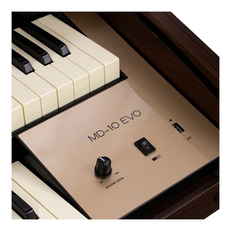 O órgão eletrônico Tokai MD10 Evo oferece um conjunto impressionante de recursos que atendem tanto músicos profissionais quanto amadores exigentes. Com dois teclados Waterfall de 44 teclas cada, pedaleira reformulada com 13 notas, drawbars com cliques de precisão e ampla seleção de efeitos e sons prontos, este instrumento é ideal para performances ao vivo, ensaios e gravações. O painel totalmente em português facilita o uso, enquanto os controles de brilho e contraste do visor LCD e dos LEDs garantem excelente visibilidade em qualquer ambiente. O novo sistema acústico proporciona fidelidade sonora superior, e a estrutura robusta com gabinete de 25mm e móvel desmontável oferece praticidade e durabilidade.