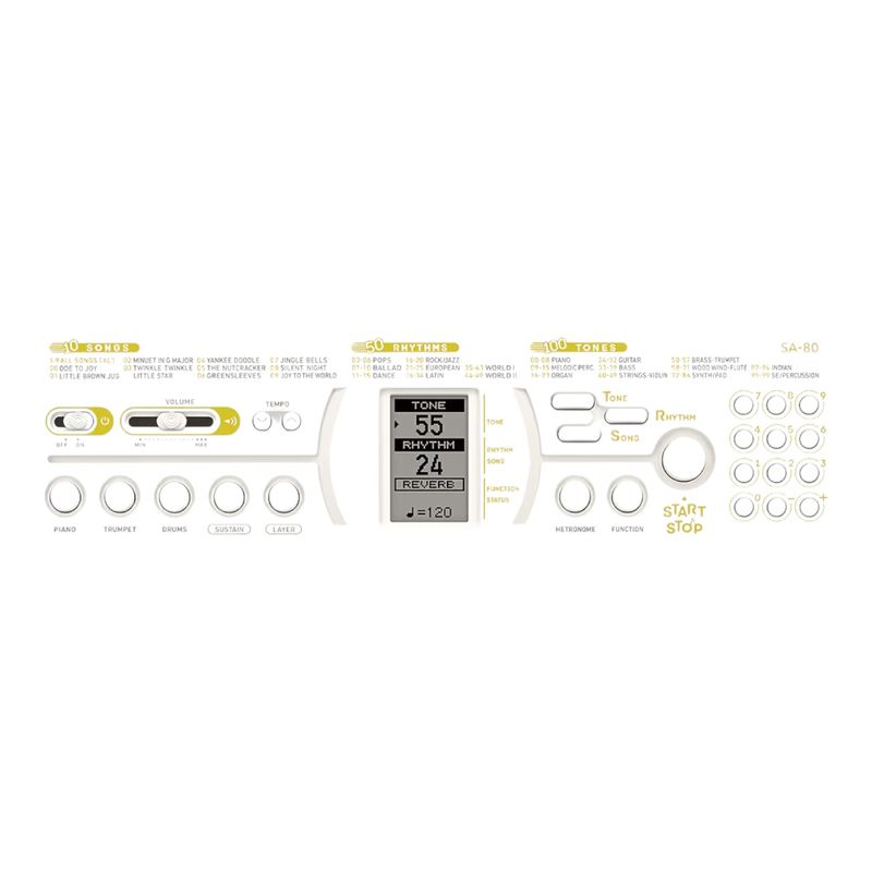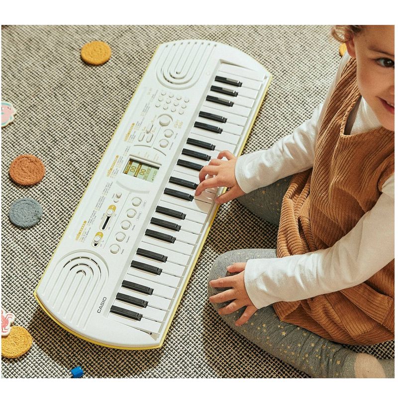 O Teclado Casio SA-80H2 é perfeito para crianças que estão começando a explorar o universo musical. Com 44 miniteclas fáceis de tocar, ele foi desenvolvido para proporcionar conforto mesmo às mãos pequenas, permitindo que o aprendizado seja natural, divertido e estimulante. Seu visual em branco com detalhes amarelos traz um estilo moderno e descolado, enquanto o tamanho compacto facilita o transporte e o uso em qualquer ambiente. Além disso, o instrumento oferece 100 timbres de alta qualidade, baseados em instrumentos reais, incluindo pianos, sopros, percussões e muito mais, tornando a experiência ainda mais rica e inspiradora.