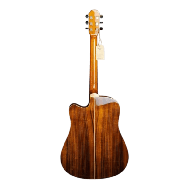 Seu formato dreadnought com cutaway proporciona excelente projeção sonora e acesso facilitado às notas mais agudas, ampliando as possibilidades técnicas do músico. O braço em Mahogany aliado à escala e ponte em Rosewood oferece conforto, estabilidade e ótima tocabilidade, enquanto o nut e rastilho em osso contribuem para sustain superior e melhor transferência de vibração. As tarraxas douradas com ponta preta garantem afinação firme e visual sofisticado, e o encordoamento D’Addario EXP16 assegura brilho, durabilidade e resposta dinâmica desde o primeiro acorde.